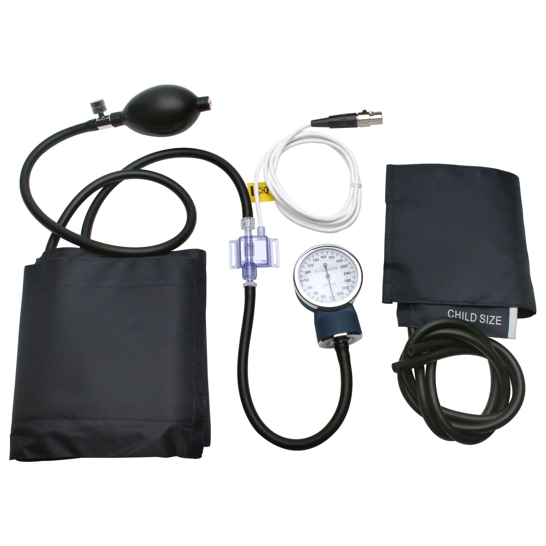 血圧計の発注時にカフのサイズをお選びいただけます。カフ3個付き血圧計(DIN)はヒト生理学キットに付属しています。心音マイクロフォンとの併用で、血圧測定と動脈脈音を同時に記録できます。