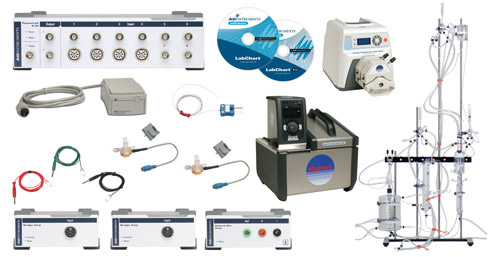 A foundation system for performing rat working heart experiments. It includes a 120101EZ/S-V Rat Radnoti Working Heart Apparatus, PowerLab C, LabChart Pro software, Pod Expander + C Series Front End Interface, and two C Series Instrument Interfaces. Please specify V = 115 or 220 for 115V or 220V.