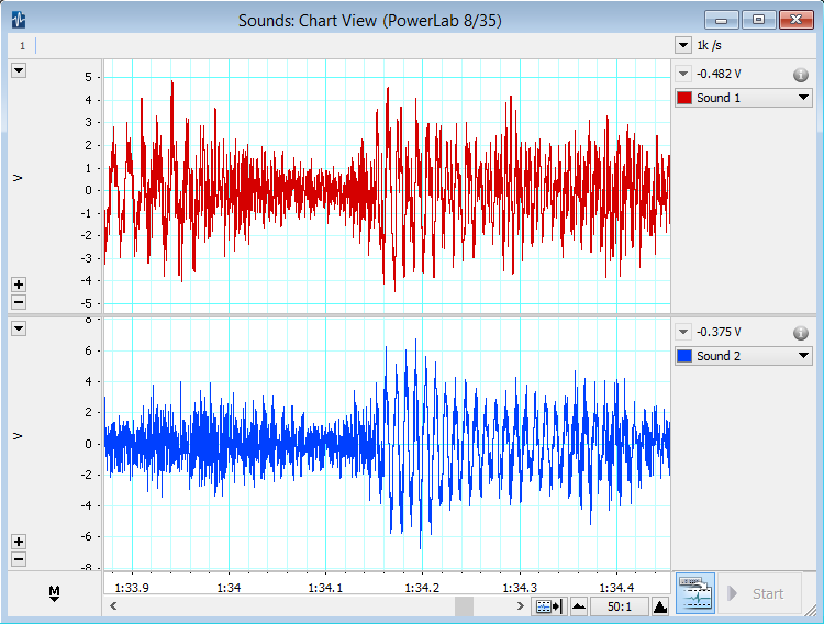 LabChart用Audio Outputアドオンは、データを音声として再生することができます。音声出力は、教育や研究に便利で、心臓の音、動物の鳴き声、声などの音を再生するために使用できます。
