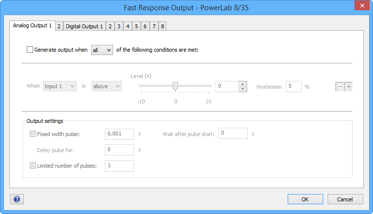 Fast Response Output 製品コード FASTRESPO LabChart用Fast Response Outputを使用すると、対応するPowerLabユニットのデジタル出力とアナログ出力を制御できます。 Download Software Fast Response Output 1.3 for Windows Fast Response Output 1.2 for Mac 数量 お見積リストへ追加 Book a demo 概観 サポート 詳細と技術仕様 Book a demo 概観 LabChart Fast Response Outputは/30および/35シリーズのPowerLabユニットのデジタル出力(その他の機種には対応していない)と、/20、/25、/30および/35シリーズPowerLabユニットのアナログ出力を制御するアドオンです。Fast Response Outputはコンピューターの環境に依存せず、入力信号に合わせて、ユーザー定義の出力結果を1ミリ秒未満で生成する機能を提供します。 Lab Builder – Find the right products for your research. 1Select your research area 2Use our smart guide to tell us your needs 3Get instant product recommendations Try Lab Builder サポート サポート記事 Our Support Articles contain answers to common questions, how-tos, solutions, and documentation. What are you looking for help with? Type - すべて - Video (10) Search 詳細と技術仕様 Technical 製品コード Software Technical 互換性Windows用LabChart 8 Mac用LabChart 8-Mac用LabChart 7 製品コード FASTRESPO Fast Response Output Software Fast Response Output 1.3 for Windows Fast Response Output 1.2 for Mac