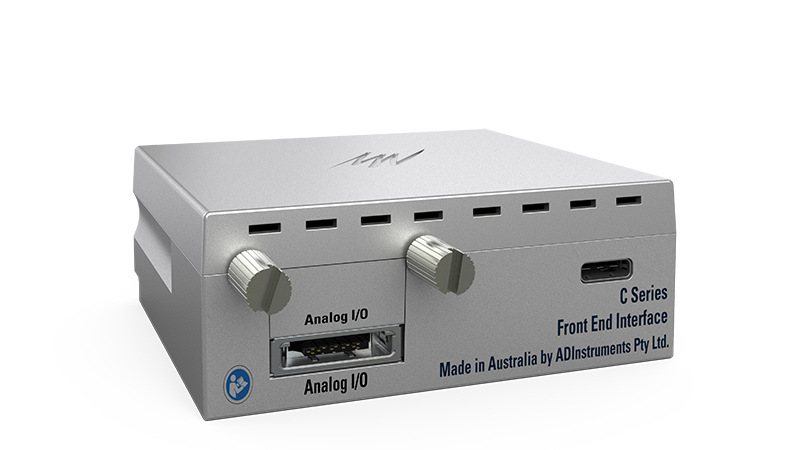 C シリーズのフロントエンドインターフェースはPowerLab C またはコンピュータに直接接続し、既存のフロントエンドからのアナログデータを変換する機器です。