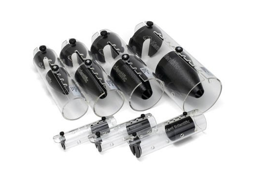 A clear acrylic holder suitable for holding mice weighing 25 and 50g, while performing non-invasive tail blood pressure measurements. Includes an adjustable nose cone that allows for unrestricted breathing. Inside diameter of 1.25’’ (31.75 mm) and length of 4.25’’ (107.95 mm).
