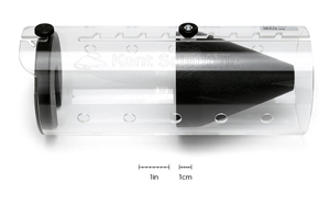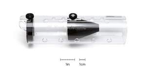 A clear acrylic holder suitable for holding mice weighing up to 25g, while performing non-invasive tail blood pressure measurements. Includes an adjustable nose cone that allows for unrestricted breathing. Inside diameter of 1.00’’ (25.4 mm) and length of 3.50’’ (88.0 mm).